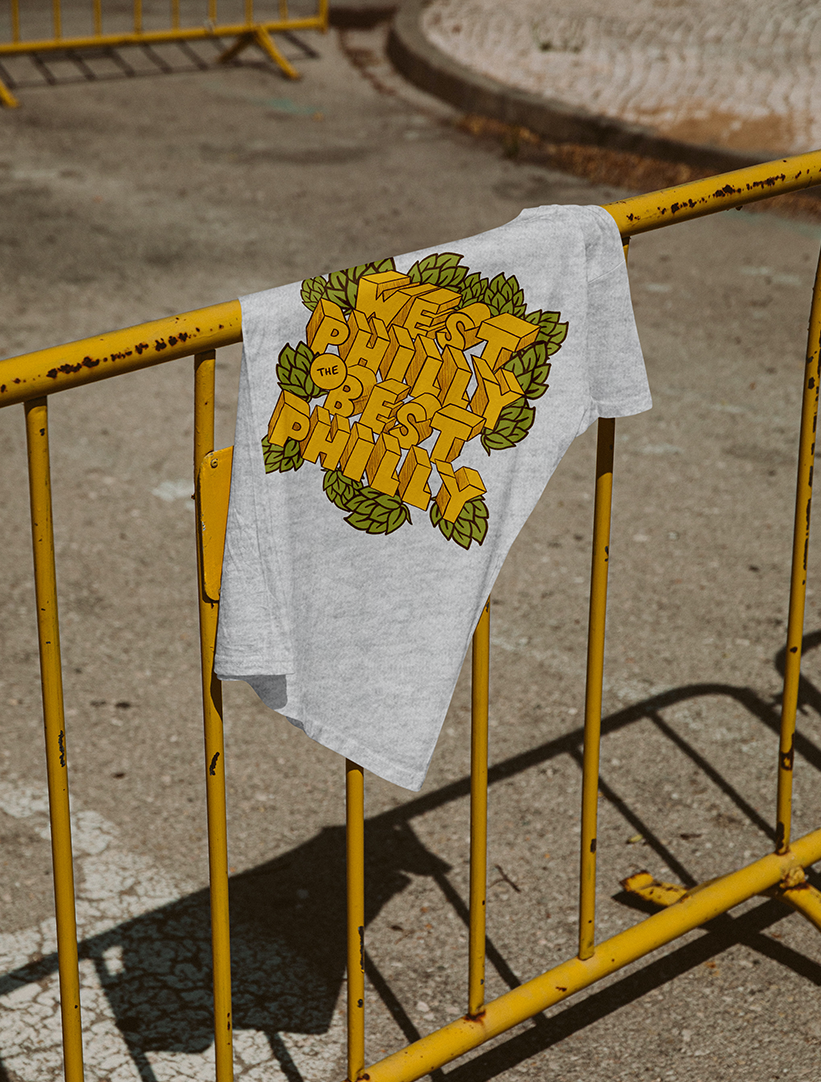 The brewery's catchphrase, "West Philly the Best Philly," seemed perfectly fitting for their inaugural branded t-shirt. Today, these tees are proudly worn by brewery staff as they passionately serve their beloved West Philly community.