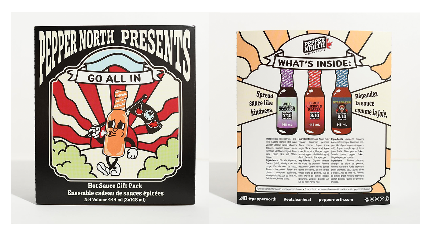 The meticulous craftsmanship and attention to detail in the custom illustration work elevate the packaging, providing Pepper North with a unique and visually compelling product presentation for their discerning customers.